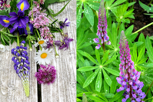The sheer beauty of it all. I sat down on the grass and gazed in wonder. I could not remember the garden being this far when I left. The lilacs, lupins, daisies, alliums and colombines all in bloom.......and the colours...breathtakingly beautiful. Perhaps someone with a magic wand did it overnight? I guess not ;-)